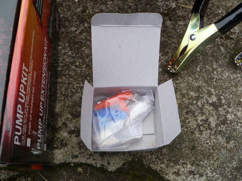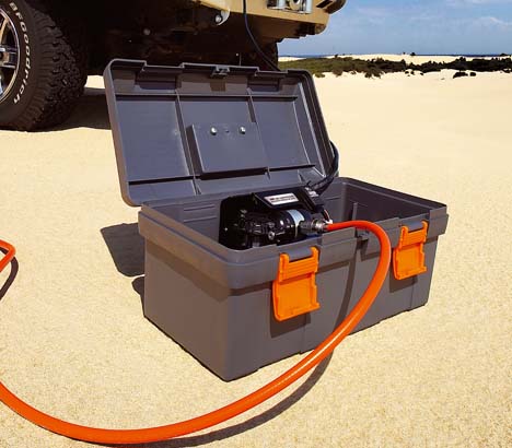 Obsahuje 6 m flexibilní hadice s různými adaptéry (pneu, kemp. výbava apod.)