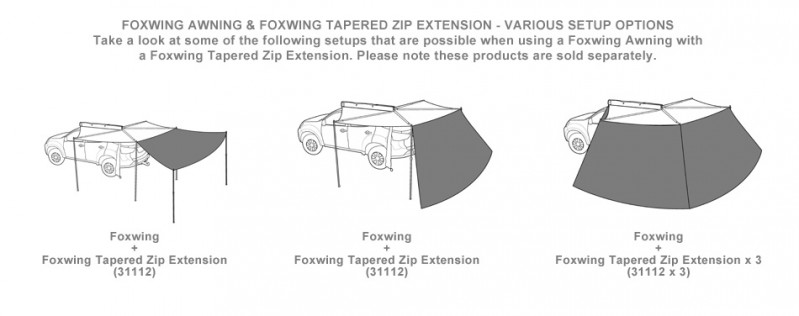 Pomocí zipů se dají na markýzu Foxwing upevnit až 4 boční díly.