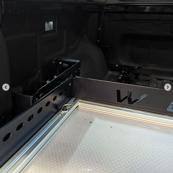 Úložné boční přihrádky na pravou a levou stranu, montuje se na montážní sadu bez vrtání, pro vozy s elektrickou roletou Ford Ranger a Raptor od 2023 a VW Amarok od 2023.